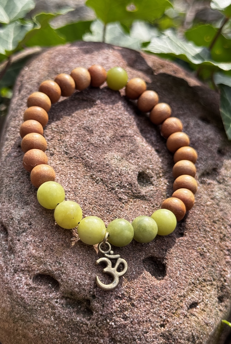 🌿 Sandelholz-Armband mit Xinyi Jade & Om-Anhänger